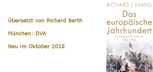 Richard Evans: Das europäische Jahrhundert. Ein Kontinent im Umbruch, 1815-1914. München: DVA 2018. Übersetzt von Richard Barth »Das europäische Jahrhundert« entwirft ein außergewöhnlich facettenreiches, überraschendes und unterhaltsames Panorama des 19. Jahrhunderts in Europa. Der...